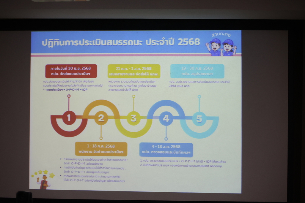 วันพุธที่ 16 ก.ค. 2568 สายงาน ผชก. ได้ดำเนินการเปิดพื้นที่แลกเปลี่ยนเรียนรู้และพัฒนาร่วมกัน ระหว่างหน่วยงาน ผชก. ฝกพ.(กปบ.) และ ฝพน.(กบอ.) มาให้ความรู้ในเรื่องการประเมินสมรรถนะ (Competency) ประจำปี 2568 และการจัดทำแผนพัฒนารายบุคคล IDP ประจำปี 2569 ณ ห้องประชุม 1211 อาคาร 1 ชั้น 2 กปภ. สนญ.