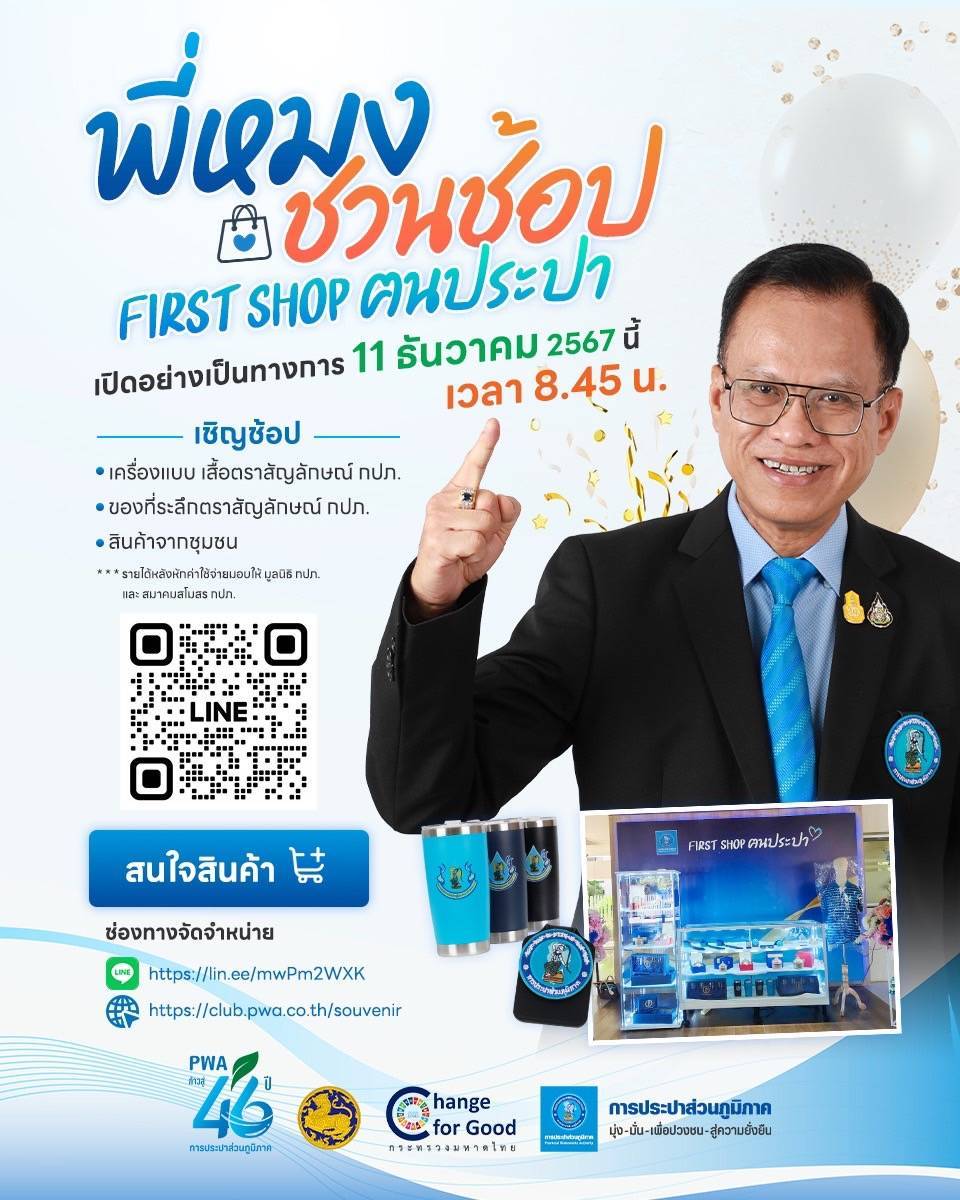 11 ธ.ค. 2567 นายอนุชา ศิริบวรเดช ผู้ช่วยผู้ว่าการ (กำกับกิจการและความยั่งยืน) และพนักงานในสังกัด ผชก. เข้าร่วมงาน “พี่หมง ชวนช้อป FIRST SHOP ฅนประปา” โดยมี ผวก. เป็นประธานเปิดงาน